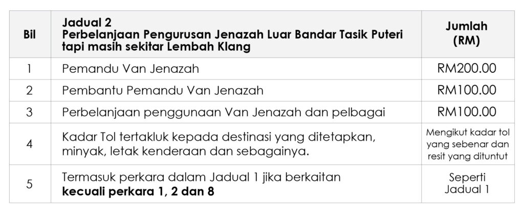 (ii). Dalam keadaan tertentu, wang tersebut juga boleh digunakan bagi tujuan-tujuan lain yang berkaitan seperti perolehan/penyenggaran kenderaan jenazah, pengurusan bilik pengendalian jenazah, penyediaan kemudahan kelengkapan pengurusan jenazah, salinan dokumen, sajian mesyuarat, kenduri tahlil dan sebagainya yang diputuskan oleh LKKSAS.