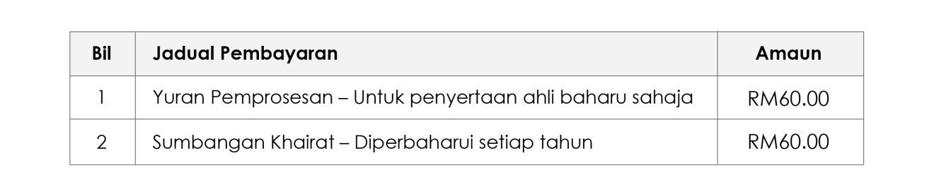 Bil 1: Yuran Pemprosesan – untuk penyertaan ahli baharu sahaja: RM60.00